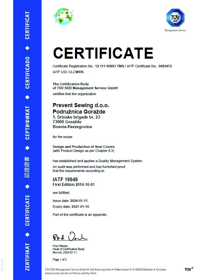 IATF 16949 certified facilities; ISO-based processes